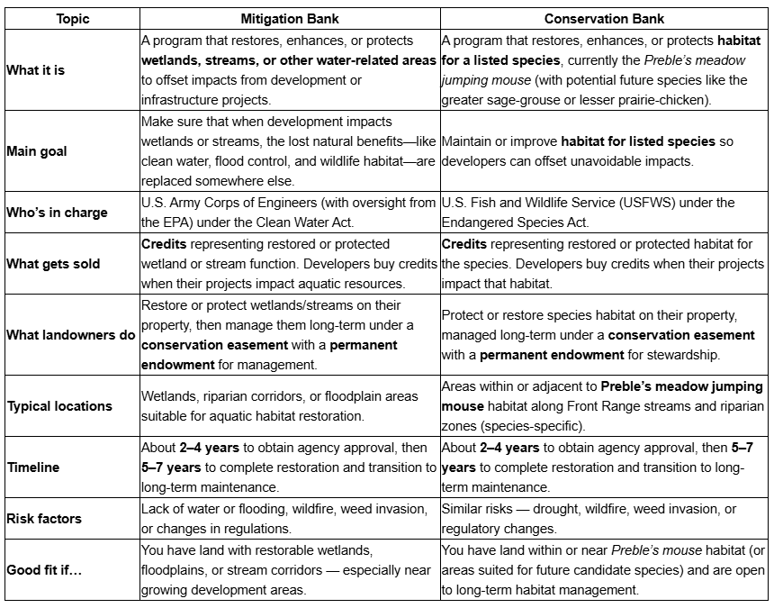 Mitigation & Conservation Banking for Northern Colorado Landowners — Quick Q&A